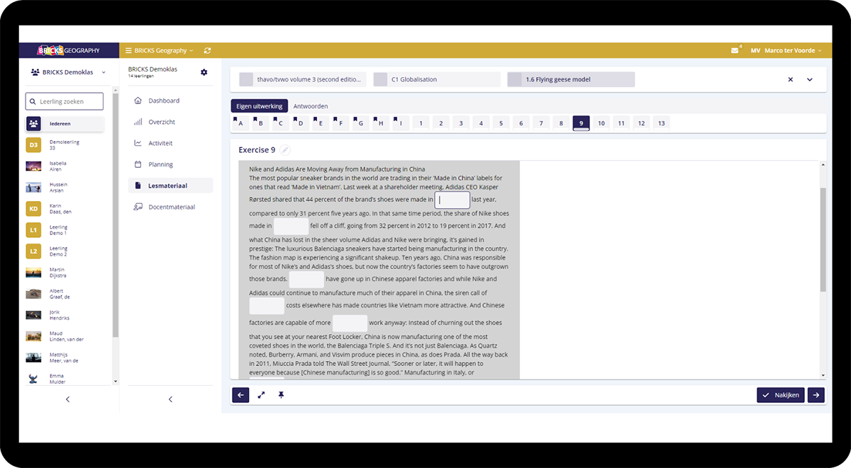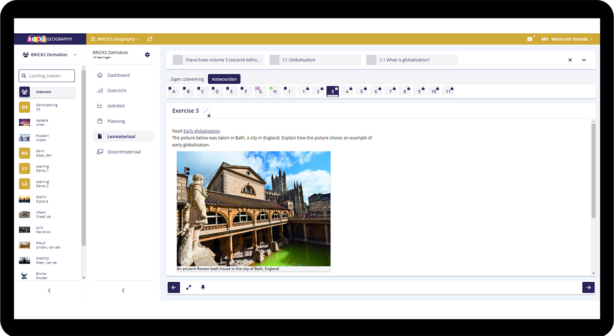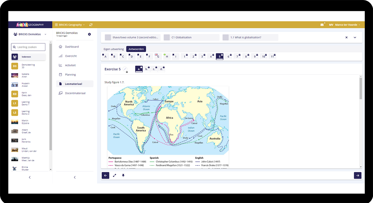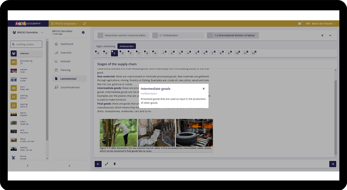 Hieronder vind je enkele voorbeelden van de mogelijkheden met betrekking tot docenten lesmateriaal, voorbeeldopgaven en de optie om notities toe te voegen aan het lesmateriaal.